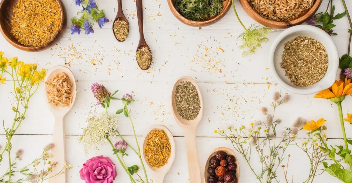 - la phytothérapie (plantes sous forme de tisanes, poudres, gélules, ampoules, extraits hydro-alcooliques, les macéras glycérinés, les teintures mères…)